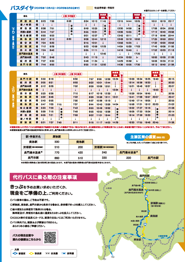 - 道路状況により、代行バスから新幹線及び他線区の在来線への接続が出来ない場合がございます。予めご了承ください。